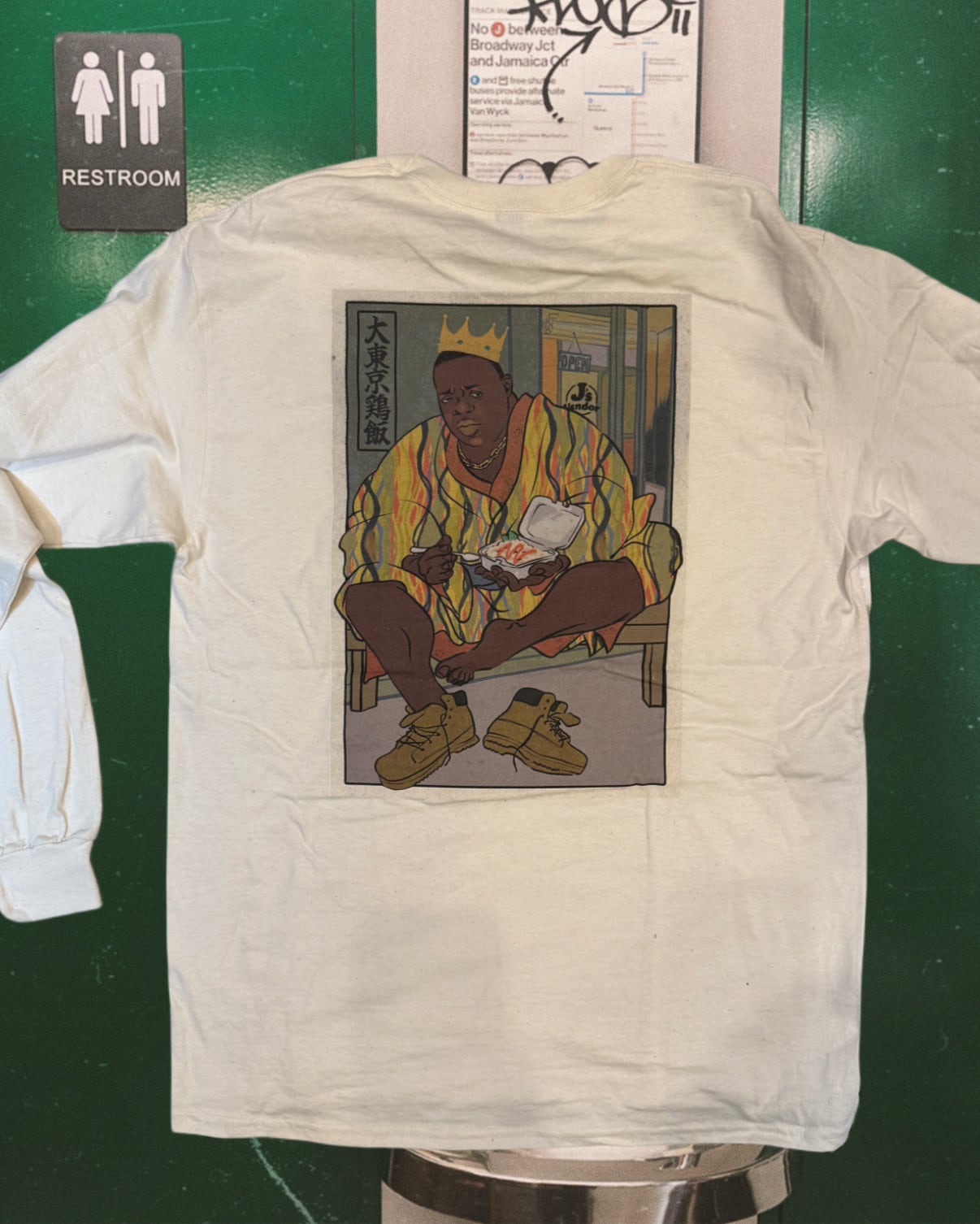 バックプリントはJ's Vendorでチキンオーバーライスを食べるBiggie!